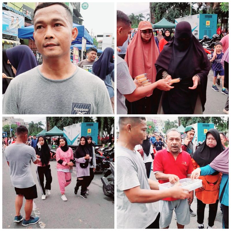 Teks. Foto : Keluarga Besar SMSI di wakili oleh Ketua SMSI Kota Binjai Siswanto Ihsan SE diabadikan saat membagikan sarapan gratis dan air mineral gratis kepada Warga Masyarakat, (16/02/2025).(sumatraterkini.id/Ist)
